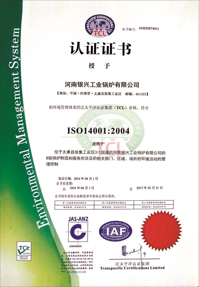 環境管理體系證書